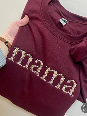 Custom Embroidered Floral Mama Sweatshirt