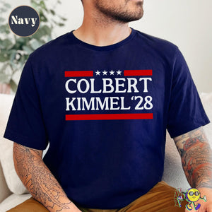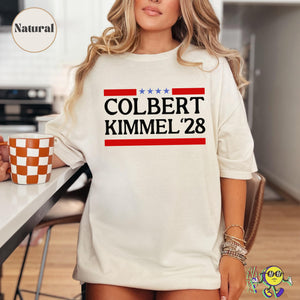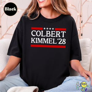 Colbert Kimmel 2028 Tee: Protect Late Night TV, Defend Free Speech