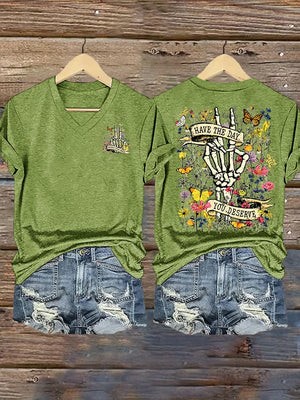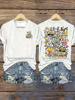 Women's Flower skull hand gesture Of WDNC Club We Do Not Care Menopause Perimenopause Print T-Shirt