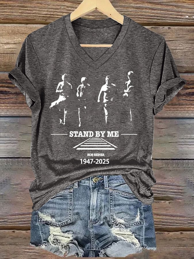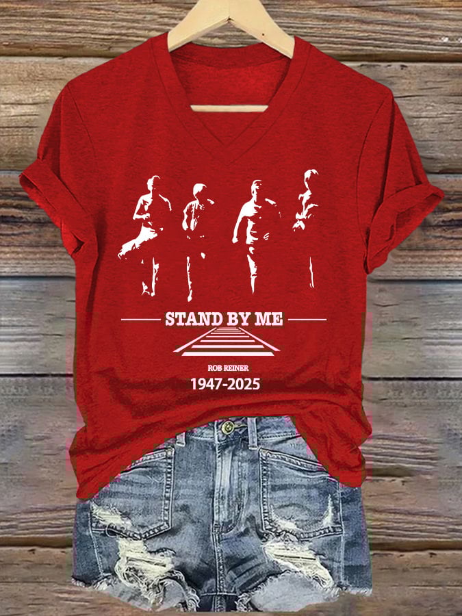 Women's Stand By Me Print V Neck T-shirt